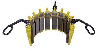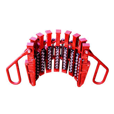 SJL and SPL single-joint, center-latch elevators are designed to replace unsafe rope slings for hoisting collaptype pipe into position. The SJL °90 elevator enables the crew to handle pipe properly, help avoid damage to pipe threads and reduce the chances of accident or injury. The SPL elevator is the same as the SJL elevator except that the SPL elevator is designed for use on tapered pipe, conforming to API specifications for extreme line casing.