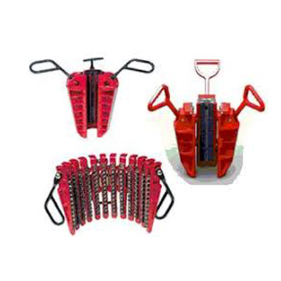 The HT tong is a tool designed for making up and breaking connections of tubular goods, from light tubing to heavy wall pipe and drill collars. There are 7 types, varying in torque capacity from 10,000 to 200,000 lbs/ft (271,000 - 13,56oNm) Covered sizes from 2 3/8” to 17“ , or 36" (HTSO with extended reach)-lnterchangeable lug jaw design permits each tong to handle different sizes of pipe. By installing hinge jaws (available for some models), bigger pipe sizes can be handled. The tongs can be assembled for either making-up or break-o by removing the hanger and turning the complete HT tong over.